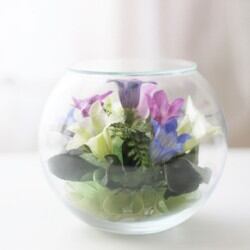 ■Lサイズのボールボトルにキキョウとリンドウ、アジサイをアレンジしました。