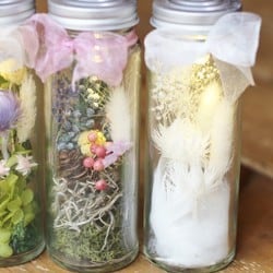 使用材料・・ラベンダー、スターチス、ピンポンフラワー、ペッパーベリー、ラスカス、マウンテンジュニパー、小さな松ぼっくり。